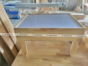 Chất liệu : mặt bàn meca sữa , viền và chân gỗ cao su