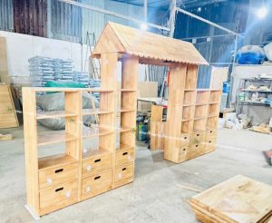 Kệ mầm non gỗ cao su- kệ cổng trang trí