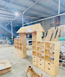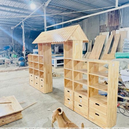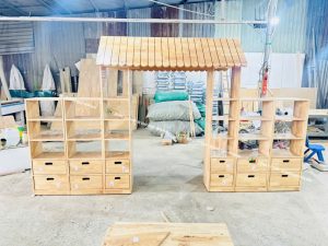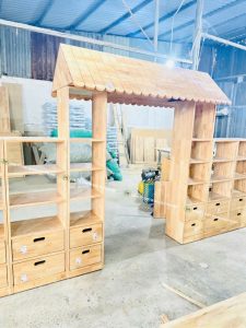 Kệ mầm non gỗ cao su- kệ cổng trang trí