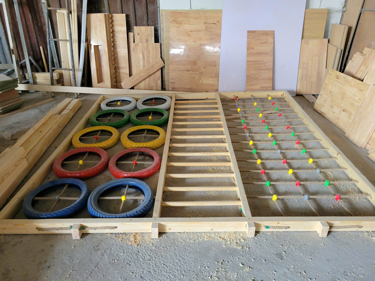- Bánh xe leo vận động: 3-4 vòng bánh xe màu sắc, hỗ trợ phát triển kỹ năng phối hợp tay – chân