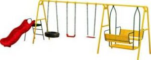 | QC: 5,0 x 2,5 x 2,0 m Khung chính cột ống 76 dày 1,4mm . Máng trượt, ghế ngồi xích đu bằng nhựa PE siêu bền. |